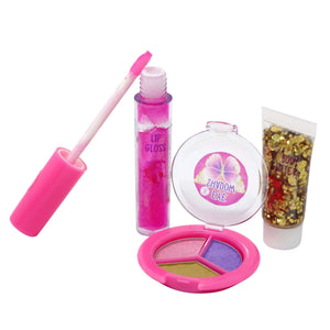 • Includes lipgloss, tri-colored eyeshadow & body glitter
