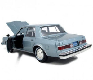 1/24 scale diecast model of 1986 Dodge Diplomat Salon by Motor Max. Item comes packaged new in a window box. Made of diecast with some plastic parts. Detailed interior, exterior. Opening boot and doors.