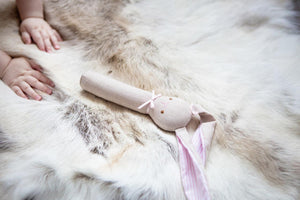 Alimrose Bunny Rattle & Squeaker - Pink Stripe Linen