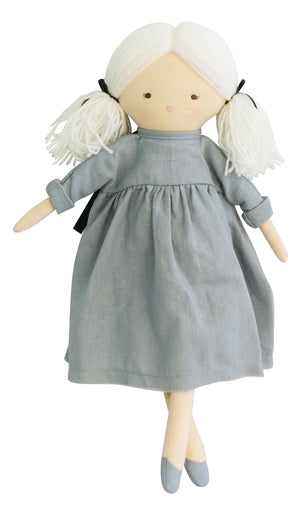 Matilda is an adorable 45cm doll with gorgeous blonde hair and an on trend grey linen frock. So comfy! Suitable from 3 years.