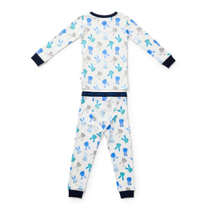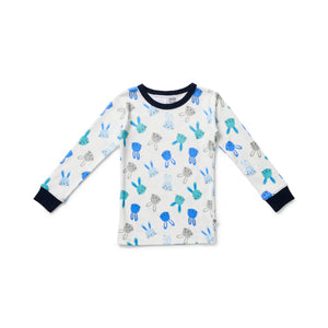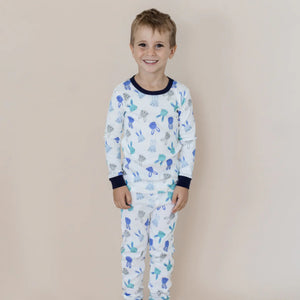 The Blue Bunny Pyjamas are made from 100% soft cotton and features our bunny print in shades of navy blue, green and grey. Finished with a soft Marquise branded waistband, it pairs back with our matching Snugglebunny zipsuit for matching family fun.