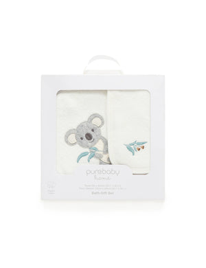 Our Koala Bath Gift Set is perfect for bath time from newborn through to toddler age, and makes the sweetest gift for a loved one! Includes a soft towel with an inbuilt hood and koala applique, and a facewasher with a sweet eucalyptus embroidery. Made from 100% Organic Cotton in an absorbent and soft double terry towelling.