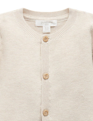 Our Essentials Textured Cardigan is perfect for all seasons and a great staple item for your nappy bag or hospital bag. Knitted from the softest 100% Organic Cotton, making them breathable and gentle against their delicate skin. Pair with Long Sleeve Bodysuit and Textured Leggings for the sweetest newborn outfit.