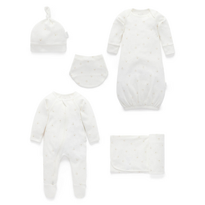 Our Welcome Baby Pack is the perfect starter pack for newborns. Featuring our top 5 must-have Essential styles for your little one's wardrobe, in the sweetest bear print. Made from our 100% Organic Cotton for the softest touch against their delicate skin. This pack also makes the perfect baby shower gift!