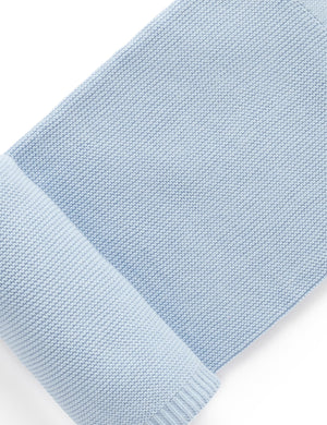 Essentials Blanket is a soft, newborn must-have! Featuring a ribbed trim border and a texture knit. Ideal for adding a layer of warmth around the house, in the car or out and about on the cooler days in the pram. Made from the softest certified 100% Organic Cotton for a soft and gentle touch against your little ones delicate skin.