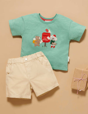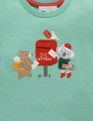 Christmas Letterbox Tee features a fun applique of a festive friends posting a letter off to Santa! Designed in a beautiful mint colour, this tee is made from 100% Organic Cotton for a soft touch.