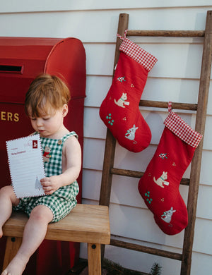 Spoil your little one this festive season with our Embroidered Christmas Stocking! Featuring a sweet Australian animal appliqué and native embroidery. Made from soft 100% Organic Cotton muslin.