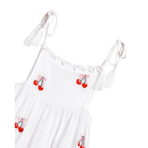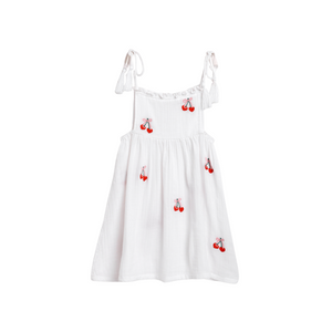 The Spring Dress in White is a breezy and adorable addition to your little one’s wardrobe. Featuring delicate cherry embroidery and playful tassel-tie straps, this dress is perfect for sunny days and special occasions. Made from soft, lightweight cotton gauze, it ensures all-day comfort and freedom to move. The tassel-tie straps provide an adjustable fit, while the cherry embroidery adds a playful touch to this charming dress.