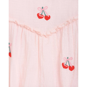 The Pretty Romper in Petal Pink is an adorable and charming piece for your little one. Featuring sweet cherry embroidery and delicate flutter sleeves, this romper adds a playful yet elegant touch to any occasion. The soft ruffle trim across the bodice enhances its timeless design. It measures 40cm (for 6-12 months) and is made from soft cotton gauze for comfort. Additional features include snap button fastening for easy dressing and elasticated legs to ensure a comfortable fit. For care, it is recommended to cold machine wash and avoid tumble drying.