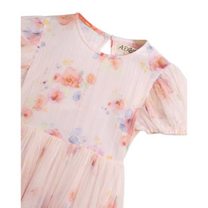 The Aria Dress in Roses is a delicate and whimsical piece, perfect for special occasions and celebrations. Designed with sweet puff sleeves and a gathered skirt, it offers an elegant silhouette that’s ideal for twirling and capturing magical moments. Lightweight and breathable, the dress ensures comfort without compromising on style. It measures 60cm (size 6) in length and is made from a soft cotton base layered with a dreamy tulle overlay.