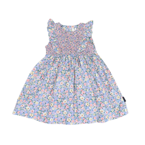 Smocked Floral Dress Blue Floral
