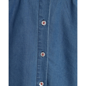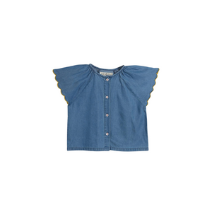 The Emmi Top in Chambray is a versatile and stylish addition to your little one's wardrobe. Featuring delicate scalloped sleeves with vibrant contrast stitching, this top pairs perfectly with skirts, shorts, or jeans. Made from soft chambray, it provides comfort and breathability for all-day wear. Additional details include a button-down front for easy dressing and lightweight, breathable fabric that ensures your child stays comfortable throughout the day.