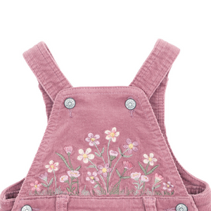 These pretty cord overalls are a great piece to have in your little one's winter wardrobe for layering. Featuring  a gorgeous floral embroidery on the front, front and back pockets these overalls are too cute to pass up this Winter.
