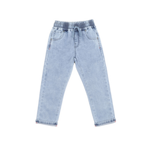 These soft and comfy jeans are a cozy winter essential for your baby's wardrobe. Featuring front pockets, back patch pocket and an elastic waist with tie offering a secure and comfortable fit. Pair it back with any tee or jumper for a complete outfit.