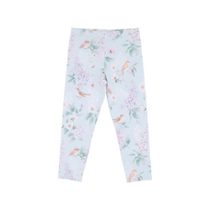 Soft, stretchy and made for comfort, these Madelyn print leggings are a charming everyday essential. Featuring our delicate bird and blossom print on a soothing blue base, they offer all-day ease for play and cuddles. Pair with the matching Madelyn Bird Tee for a beautifully coordinated look.
