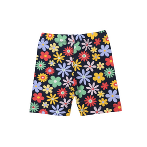 Add a burst of colour to your little one's wardrobe with Korango's Flower Print Cotton Bike Shorts Navy! Featuring a cheerful flower pattern on a navy background, these shorts bring fun to any outfit. The elasticated waist ensures a comfy fit, perfect for playtime adventures and bike rides. Durable and vibrant, they’re a must-have for every playful princess.