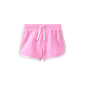 Milky Clothing Candy Short. Sweet, simple, and made for summer fun. The Candy Short in solid pink is a versatile staple for every little wardrobe. Made from soft unbrushed fleece, it features a comfy elastic waistband with a functional drawcord and a crisp white bind for that sporty edge. With the same easy fit as our Cherry Stripe Short, it’s perfect for mixing, matching, and moving all day long.