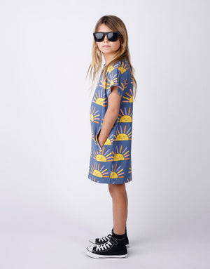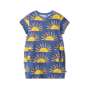 Awesome tee dress with rounded side seams, mid length sleeves and front pockets.