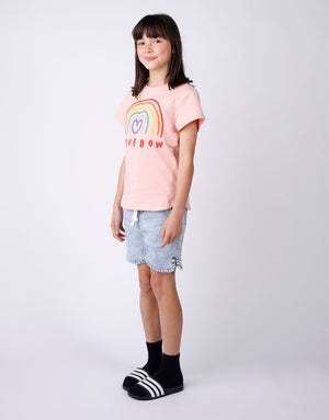 Comfy tee with mid length sleeves and scooped front and back hem. 175 Gram // 95% Cotton // 5% Elastane.