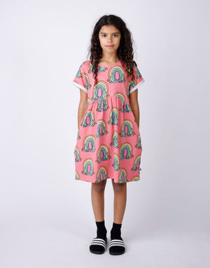 Awesome tee dress with mid length sleeves, curved rouched empire seam and hidden side pockets.