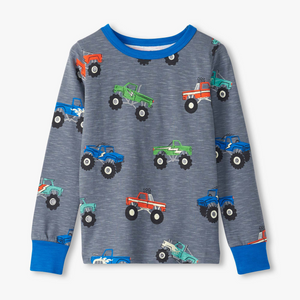 Hatley Monster Trucks Stretch Cotton Pajama Set - Folkstone Gray