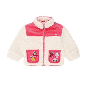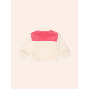 Meet your new favourite layering piece. This scrumptiously soft and fluffy sherpa jacket features colour blocked paneling, deep pockets, and removable patches to play with.The perfect in between weather cover up.