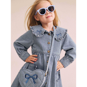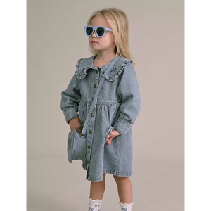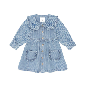 Huxbaby Vintage Bow Collar Denim Dress