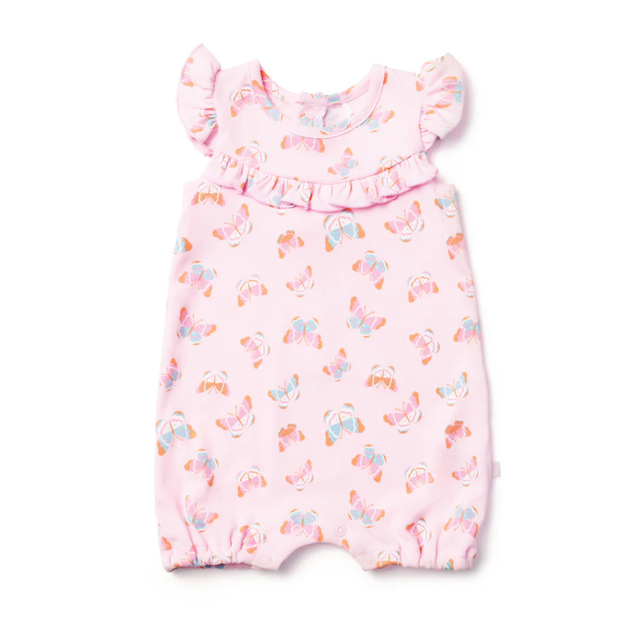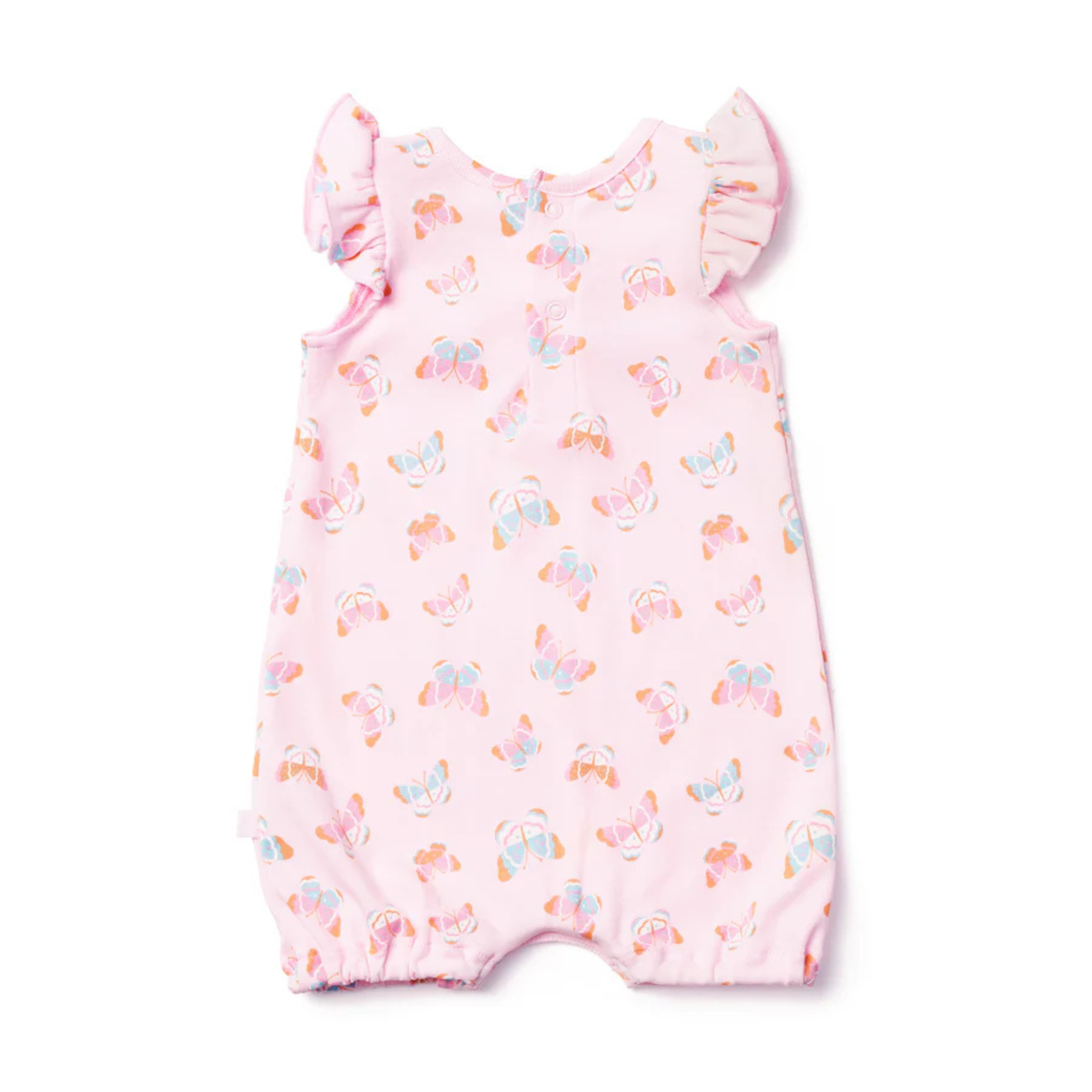 The Pink Butterfly Frill Romper is made for carefree summer days filled with play and wonder. Featuring an all-over butterfly print and flutter sleeves, this sweet romper brings a touch of whimsy to your little one’s wardrobe. Made from 100% cotton with easy press studs for breezy outfit changes.