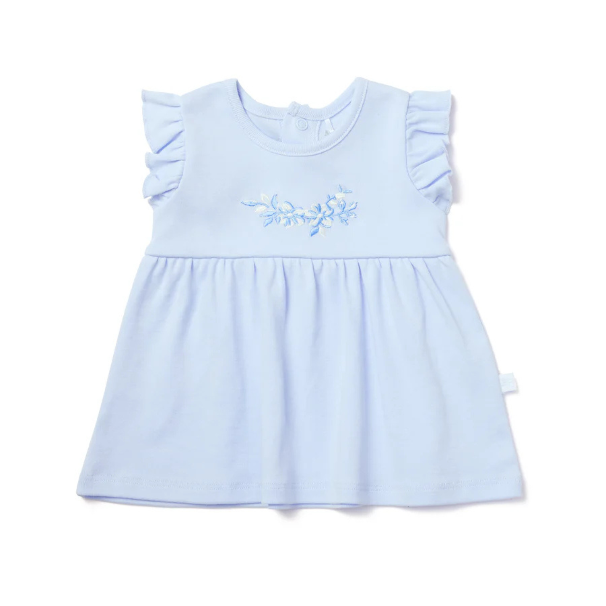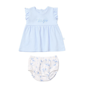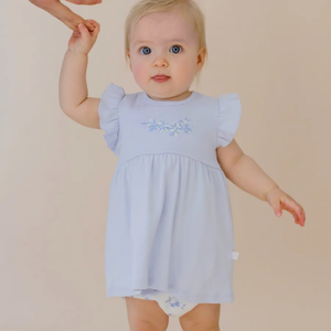 The Seascape Floral Dress & Bloomer Set is a timeless outfit made for special moments and sunny day adventures. The light blue dress is embroidered with delicate blooms, perfectly complemented by white bloomers covered in dainty floral print. Made from 100% cotton for gentle, all-day comfort.
