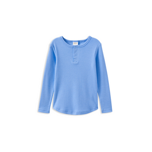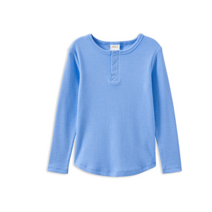 Milky Clothing Blue Henley. Stay warm this winter in style with our Milky Clothing Blue Henley! This cozy ribbed henley features a stylish center front button opening and comes in a variety of colors and fabrics, making everyday dressing easy and effortless. Wear it solo for a classic look, or layer it with an overshirt for a chic winter ensemble. With this fuss-free fashion staple, you’ll look great without the hassle!