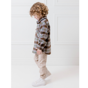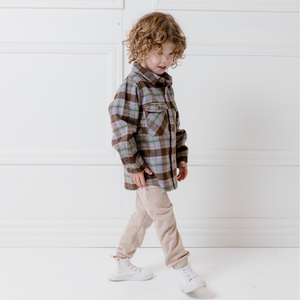 Looking for the perfect extra layer for your little one? The Milky Clothing Earth Check Overshirt is the ideal grab-and-go option! Effortlessly versatile, this overshirt can be easily thrown over a t-shirt, providing warmth without the bulk of a jacket.