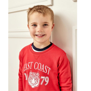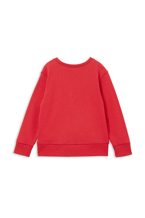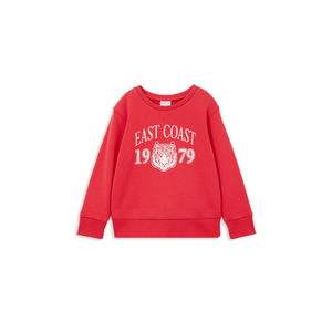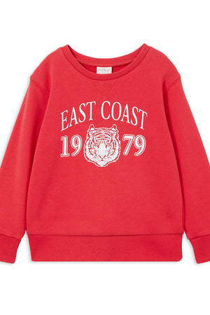 Milky Clothing Red Tiger Fleece Sweat. A soft, unbrushed fleece sweatshirt in a stunning red colour that can add a spark to your winter wardrobe. This trendy white tiger print is attention-grabbing and can be paired perfectly with classic jeans or matching red track pants to make a bold statement.