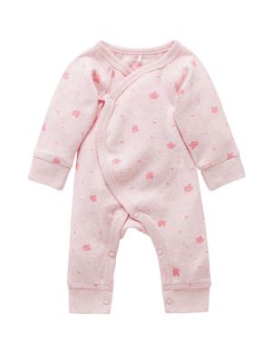 Purebaby Premie Crossover L/S Growsuit - Pale Pink Leaf