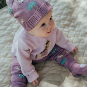 Keep those little legs warm and cosy in our On the Farm Leggings! Featuring an all over farm themed jacquard and an elasticated waistband for comfort. Made from our organic cotton and wool blend for a warm and snuggly legging. Pair with our On the Farm jumper for a sweet winter outfit.