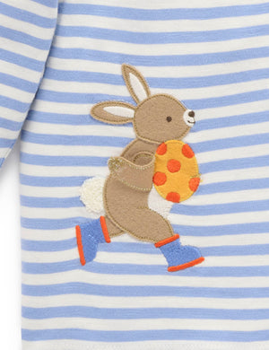 Our Easter Egg Thief Tee is a fun layering style! Featuring a classic all over stripe and playful interactive applique of bunny's stealing Easter eggs! Made from the softest 100% Organic Cotton for extra warmth. Pair with our Bunny Track Pants for a casual, comfy outfit.   Classic all over stripe Fun interactive bunny applique Elasticised rib neck trim that won't lose its shape Made from 100% Organic Cotton