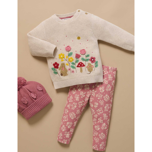 Our sweet Woodland Jumper features a fluffy applique of forest flowers and small creatures. Made from our organic cotton wool blend, this is a cosy piece which can be paired with our Thick Pocket Leggings and Beanie for a sweet outfit.
