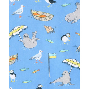 For sun-soaked summer days and breezy beach strolls, these cheerful cotton overalls are the perfect pick. Decorated in our playful puffin and seal beach print, this lightweight design is comfy, practical and oh-so-cute-ready for warm weather adventures.