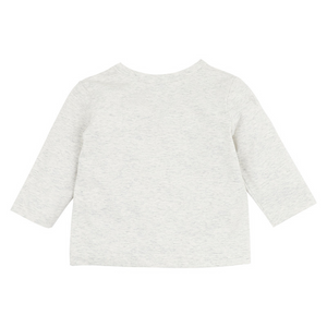 This long sleeve crew neck tee features a sweet graphic on the front and a concealed press stud shoulder opening making it a great basic for your little one's Winter wardrobe to wear back with the Boys pull on jeans or the Mateo stripe leggings for a complete outfit.