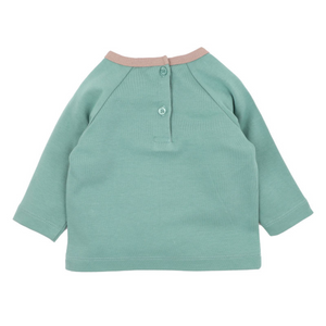 This gorgeous raglan sleeve crew neck tee features a sweet appliqued and embroidered graphic on the front and a back neck button opening making it a great basic for your little one's Winter wardrobe to wear back with the Boys pull on jeans or the Mateo stripe leggings for a complete outfit.