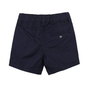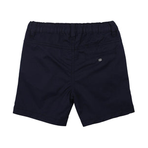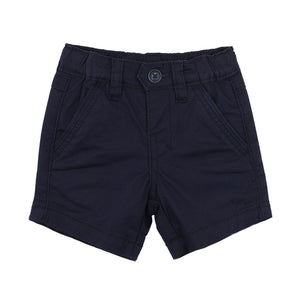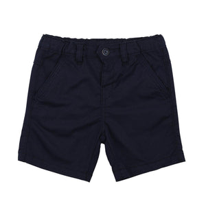 These navy stretch cotton shorts feature front side pockets a back welt pocket and an adjustable elasticised waist for comfort perfect to pair back with a shirt.