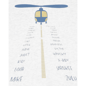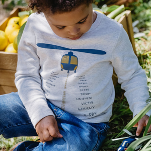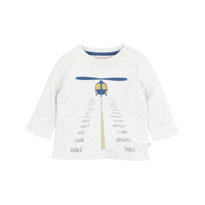 This long sleeve crew neck tee features a fun graphic on the front, concealed press stud shoulder opening and rib neck band, making it a great basic for your little one's Winter wardrobe to wear back with the Boys pull on jeans or High Flyer track pants for a complete outfit.