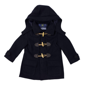 Make sure your little one is extra cozy this winter with Korango's navy duffle overcoat! Whether they're at home or out for a walk, they'll stay warm and stylish. The collared style with detachable hood, zip and wooden toggles provide a secure fit, while the pockets add a touch of practicality. This coat is fully lined and perfect for keeping chilly winter days at bay. Treat your favourite guy to this top-notch boys navy duffle overcoat.