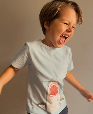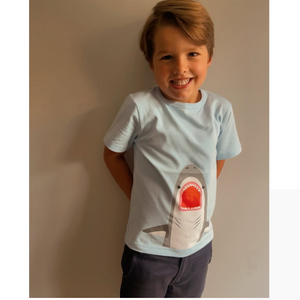 Get your little one’s wardrobe ready for a splash of fun with Korango's Blue Shark Print Tee! Crafted from a soft cotton jersey, this funky tee features a bold shark print on the centre that's sure to make an impression. Perfect for the playful little guy in your life, this T-shirt is sure to be their go-to choice when they want to look cool and stay comfortable.