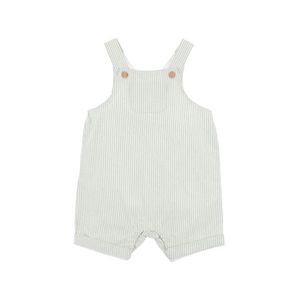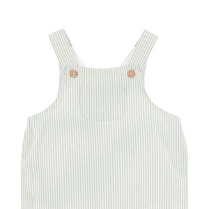 This classic overall is made for warm days and garden play. Crafted from 100% cotton in a soft green and white stripe, it's lightweight, breathable and full of vintage charm. A patch pocket sits at the chest, framed by wood-look buttons on the adjustable straps. The cuffed hems and press studs at the crotch make dressing easy and comfortable for little ones. Can be worn on its own or pair it back with the Roman bodysuit for  timeless look.