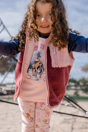 Milky Clothing Own Kind Tee. Let your little one ride their own trail in Milky’s Own Kind Tee. With its soft pink body, contrast navy raglan sleeves, and bold western graphic, this long-sleeve tee is a reminder to be unapologetically themselves. Featuring a cowboy scene with a “Be Your Own Kind” message, it’s full of feel-good vibes, comfy cotton stretch, and everyday attitude, perfect for wild hearts and big imaginations.