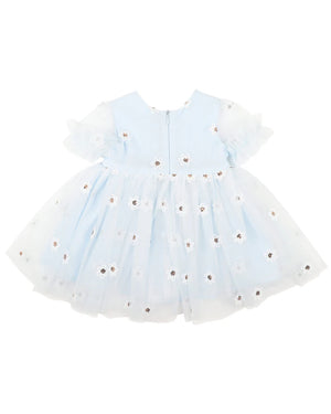This gorgeous embroidered sequin daisy tulle dress has all the sparkle for the upcoming festivities. Featuring  puff sleeves with frill hems, a gathered skirt with a zip back opening for easy dressing, what more could your little Princess want!