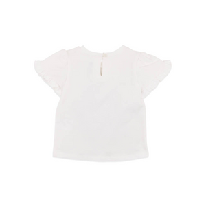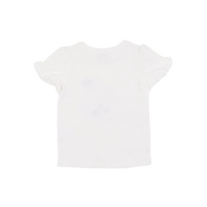 A fresh garden scene comes to life on this soft cotton elastane tee, where butterflies flutter, flowers bloom and a golden bird sings sweetly from its perch. The delicate illustration is partially embroidered, adding a special textured detail little ones will love. With fluttery tulip sleeves and a comfortable fit, it's made for playdates, park strolls or everyday adventures.