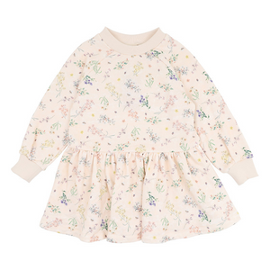 This sweet cottage flower print 100% organic cotton loop back terry sweater dress with drop waist gathered skirt, is the perfect winter wardrobe addition offering a stylish element which will be worn with comfort and ease.