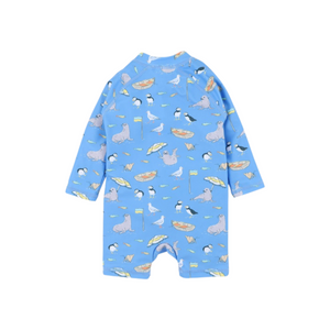 A playful print and a practical design make this long sleeve surf suit perfect for little adventurers who love to splash and explore. With full-length sleeves for added sun protection and a centre front zip for easy changes, this cheerful suit is ready for a day at the beach or poolside fun.