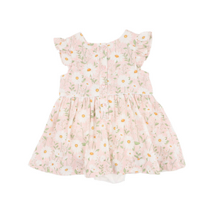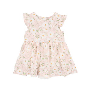 A sweet daisy daydream for your little flower. This overlay dress features an all-over daisy print in soft pink tones, flutter sleeves, and a gently gathered skirt for a touch of timeless charm. Underneath, a built-in bodysuit keeps things comfy and practical, making this one-piece outfit perfect for busy little explorers.